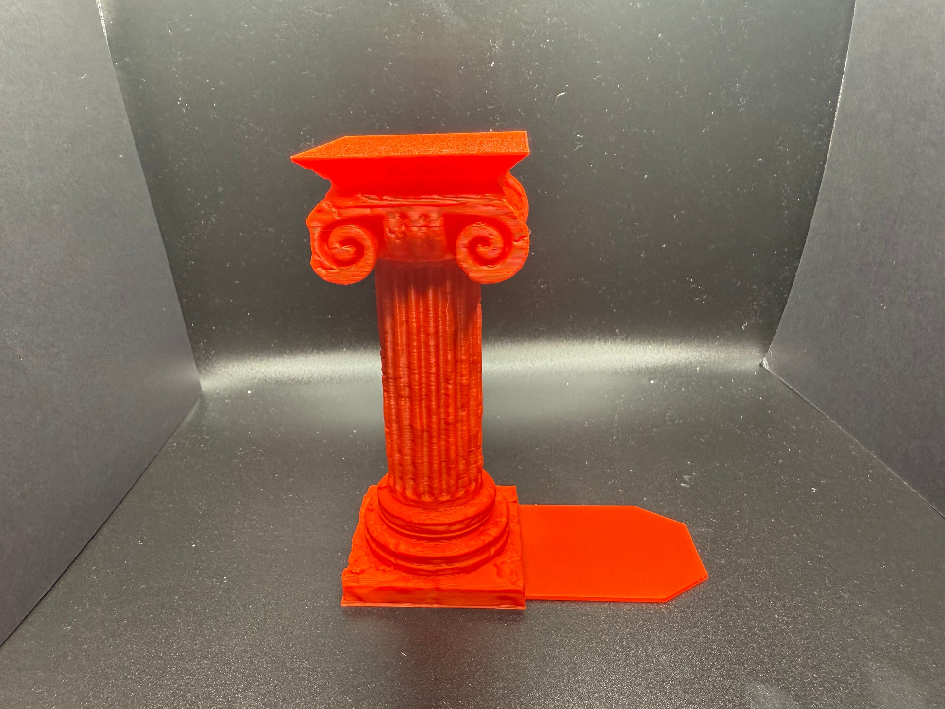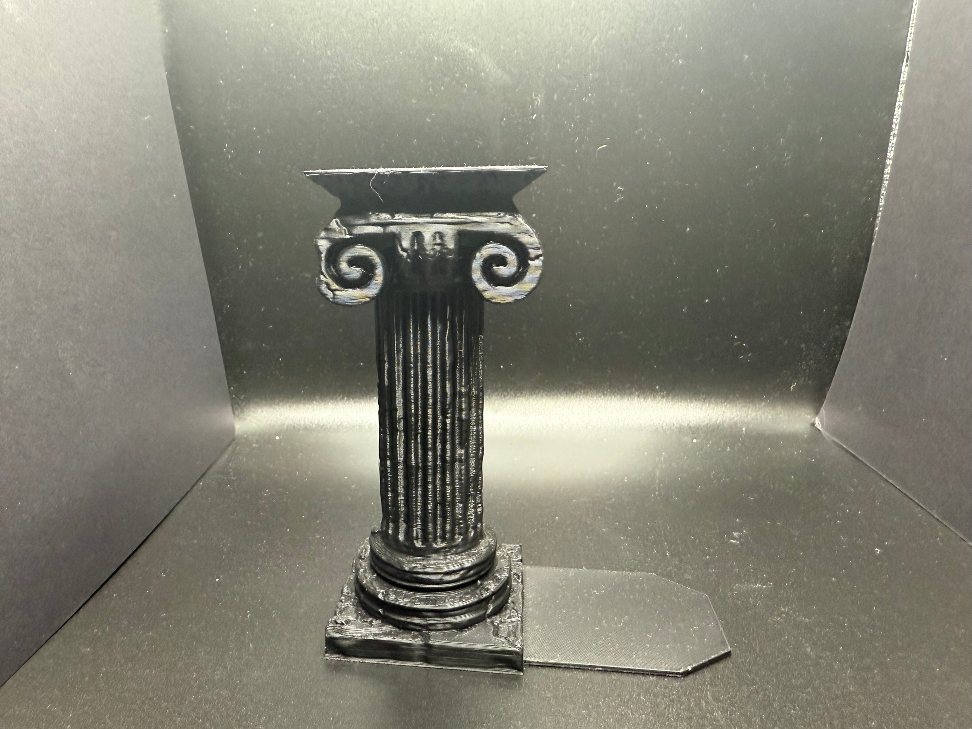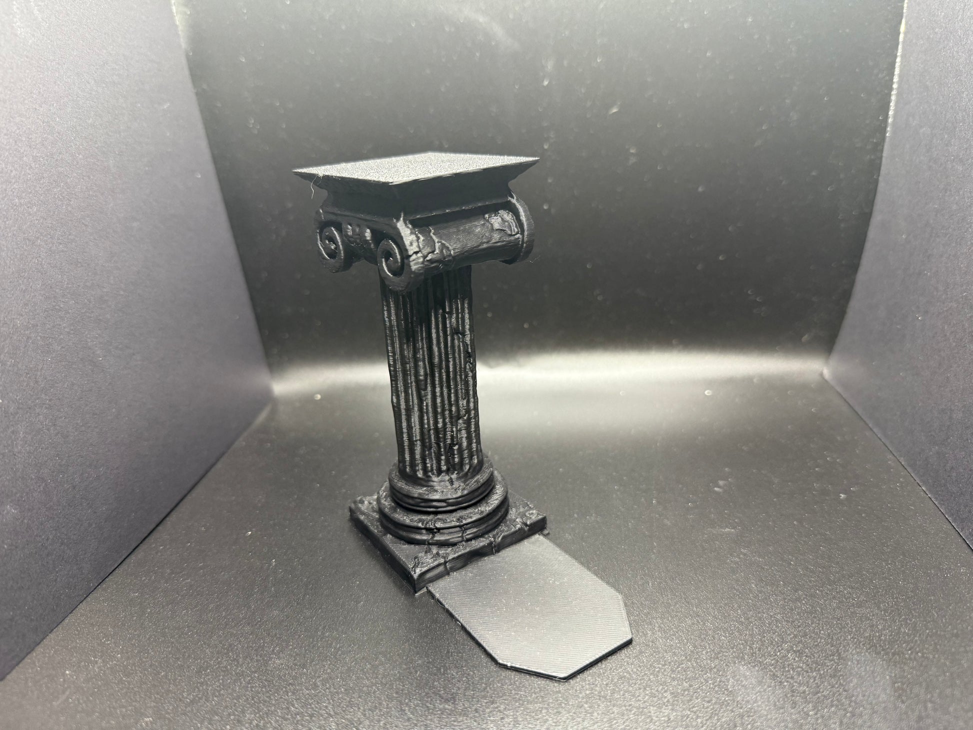 This filament 3D printed column features a classic design with a square top and fluted shaft, standing elegantly on a square base. The top lid screws off, revealing a hidden compartment perfect for storing tiny items like bookmarks, notes, or small collectibles. Ideal as a decorative book holder on bookshelves, adding a touch of sophistication while keeping small treasures safe.