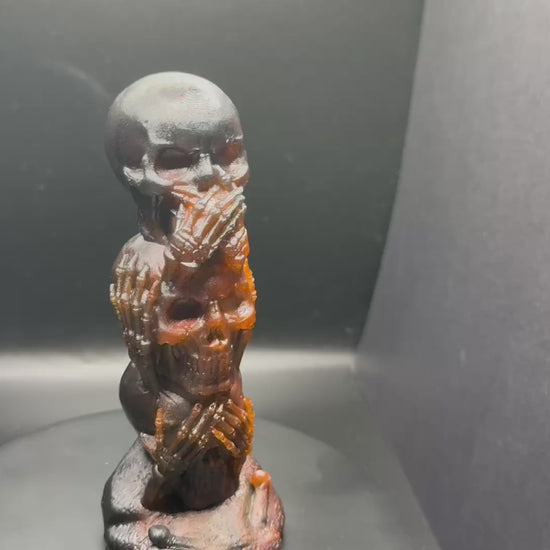 Add a touch of edgy elegance to your gaming room, home office, or living space with this unique resin figurine. Weighing 0.40 pounds, this intricately designed piece features three skulls embodying the iconic "See No Evil, Hear No Evil, Speak No Evil" philosophy.