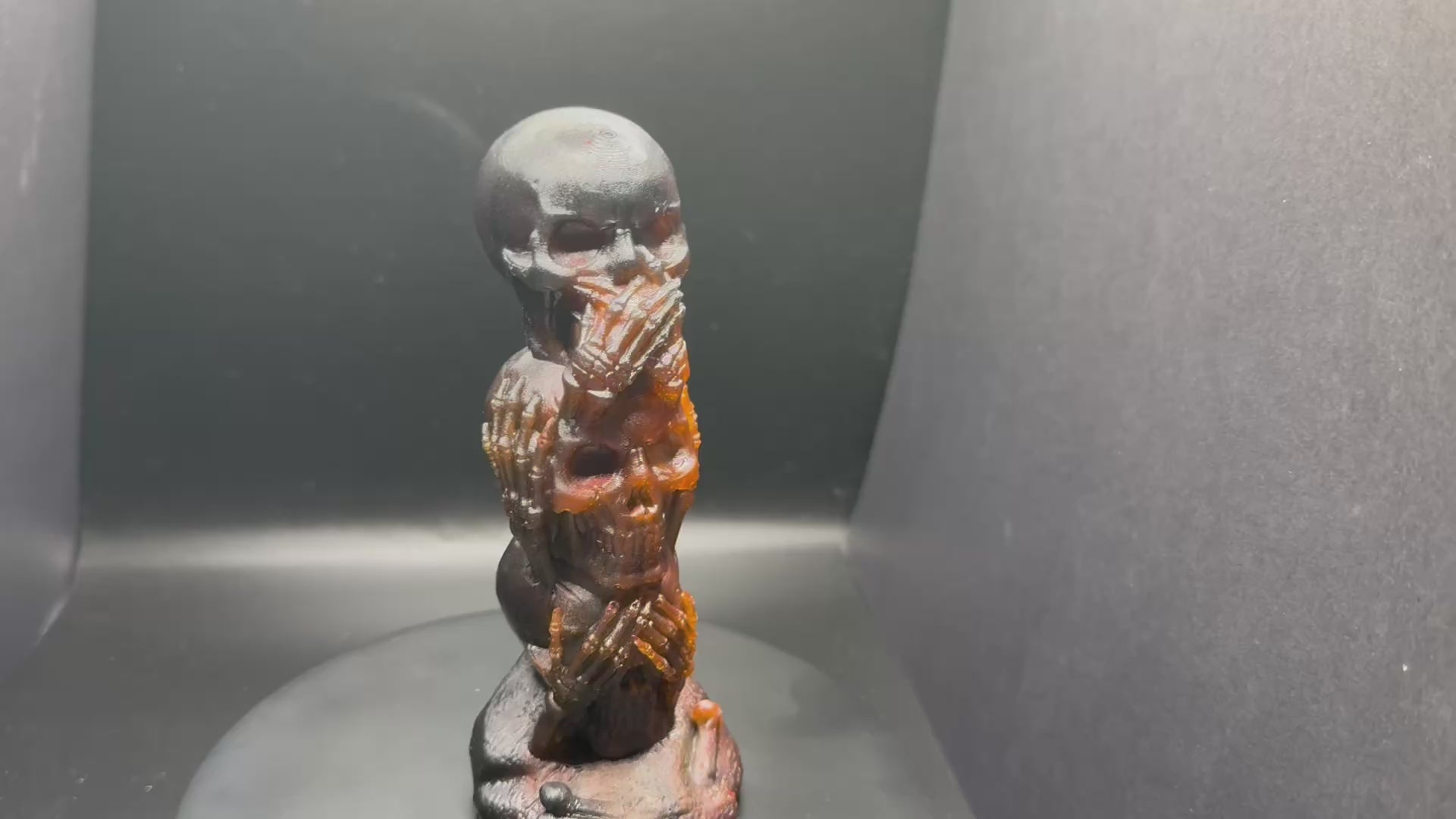 This figurine is sure to appeal to fans of dark humor, gothic aesthetics, or those who appreciate a bold statement piece. Its compact size and lightweight design make it easy to display on a desk, shelf, or mantle.